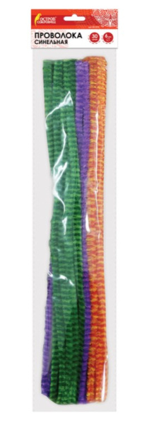 —Проволока синельная для творчества 'Пушистая', двухцветная, 6 цв, 30 шт, 0,6х30 см, 661524